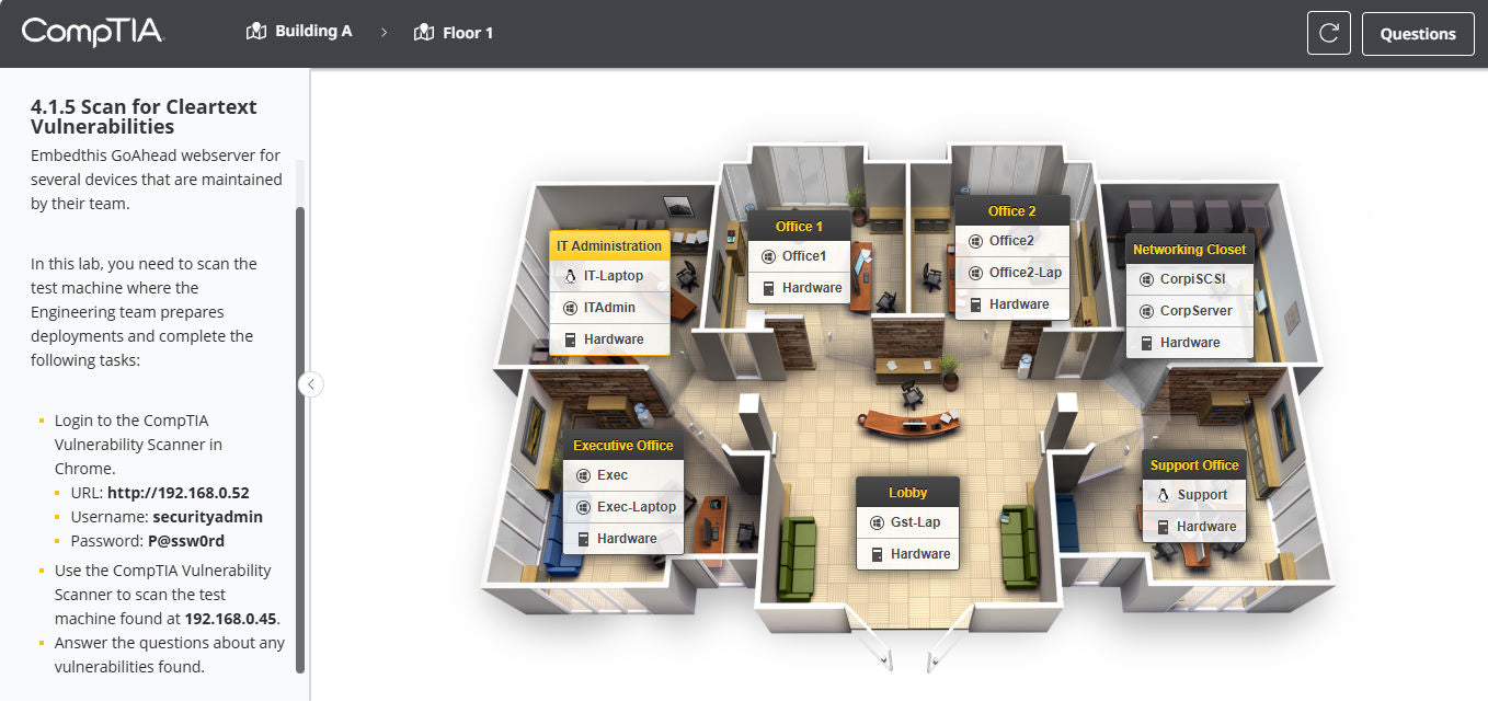 Interactive Learning – Self-paced lessons with video instruction, guided labs, and performance-based questions (PBQs).